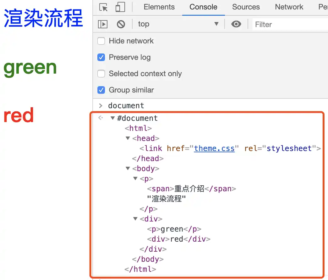 div p {color:green;}这张样式表最终应用到 DOM 节点的效果如下图所示: