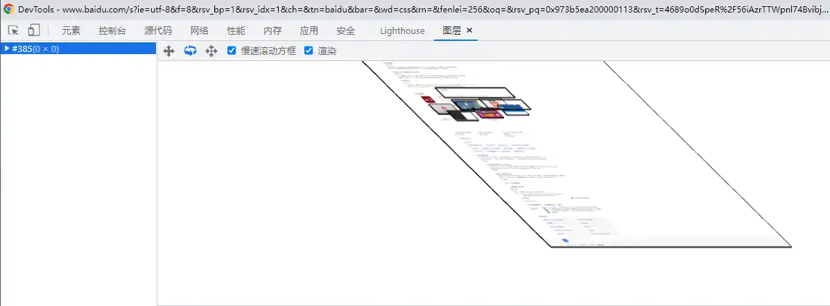 要想直观地理解什么是图层,你可以打开 Chrome 的“开发者工具”,选择“Layers”标签,就可以可视化页面的分层情况,如下图所示: