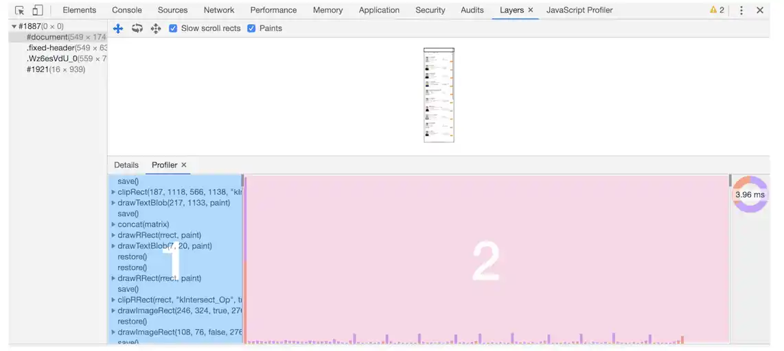 你也可以打开“开发者工具”的“Layers”标签,选择“document”层,来实际体验下绘制列表,如下图所示: