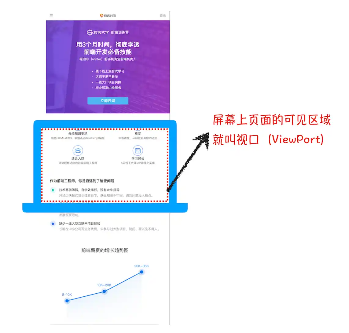 那我们得先来看看什么是视口,你可以参看下图:
